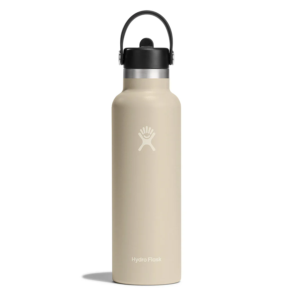 A 24 oz Wide Mouth water bottle with our leakproof Flex Straw Cap—easy to fill, easy to drink. Open it up, add your ice, and flip to sip. The insulated stainless steel keeps it cold for up to 24 hours.