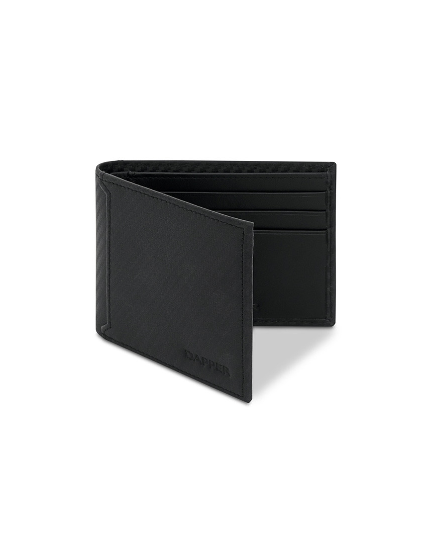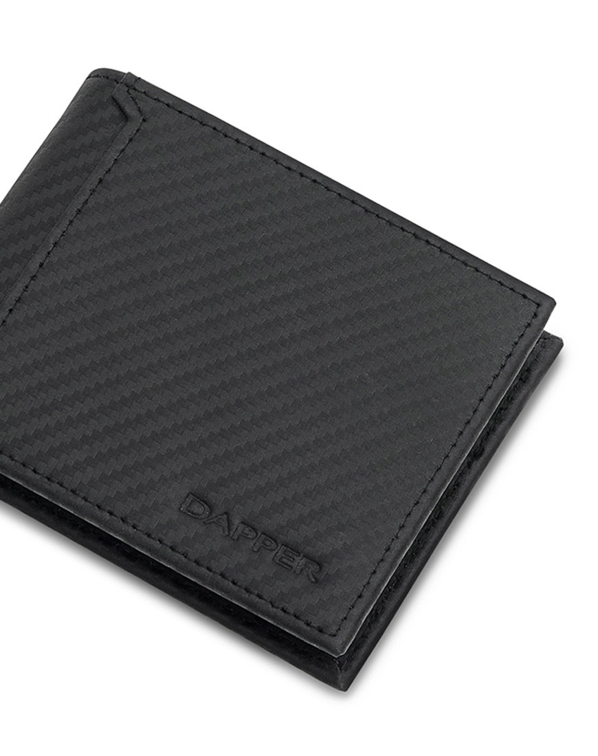Carbon fiber billfold wallet with slip pocket is made from Genuine leather with carbon fiber coated surface and has a front slot for keeping your most-used cards close. It also has six additional internal slots and a central compartment for notes & receipts.