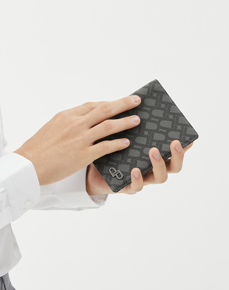 DP Interlock Monogram Passport holder is an elevated way to organise your travel essentials. It’s made from Grey & black monogram printed leather & black nappa Leather interior with plenty of card slots and a place to keep your identification.