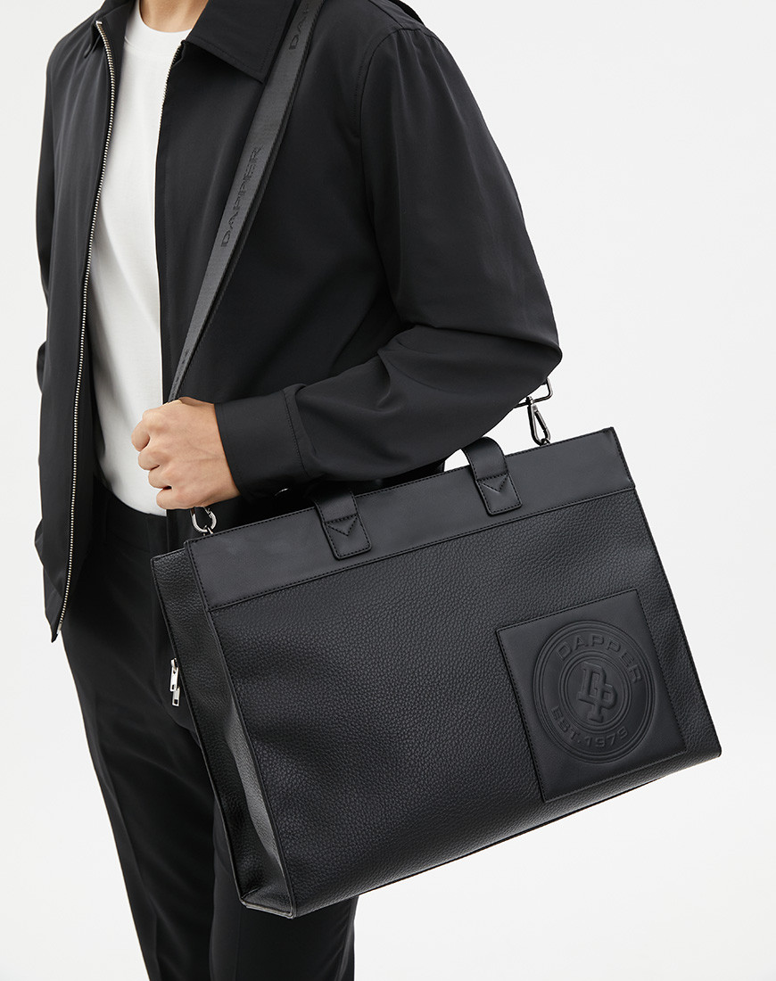 Get the most of your day to day with the DAPPER DP 1979 logo stamp tote bag in black. Sporting a sleek design and roomy interior to bring style and substance to your look. Sophistication comes easy with a corner embossed logo. The modern design comes with a removable shoulder strap to rock as a crossbody for adde versatility. Decorated with Bright Red colour accent nylon twill Lining Fabric.
