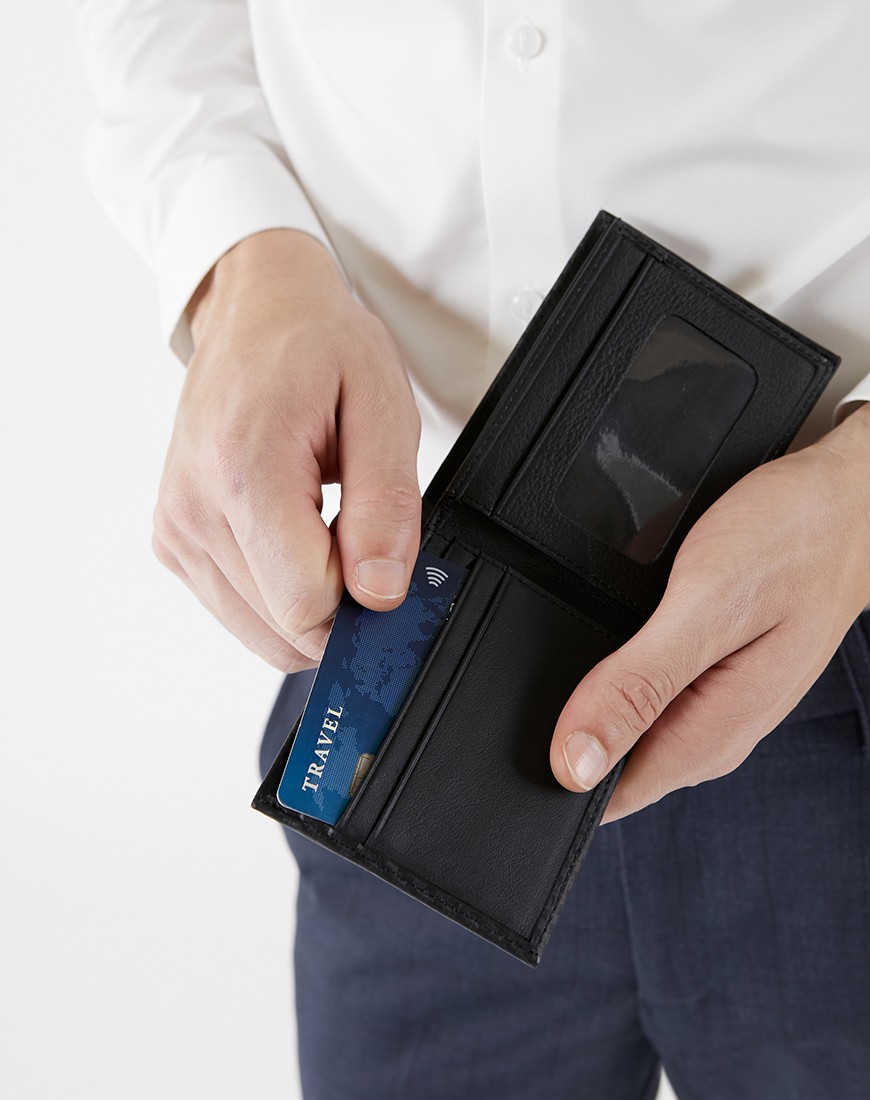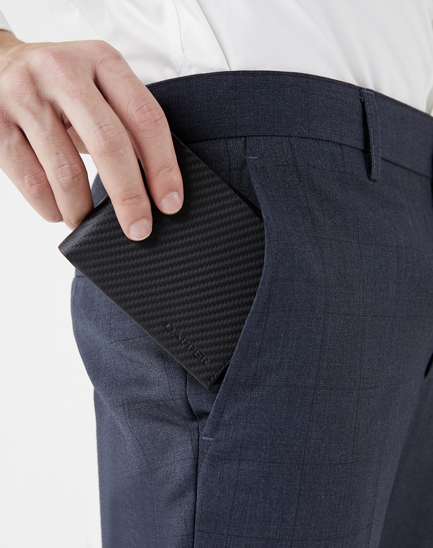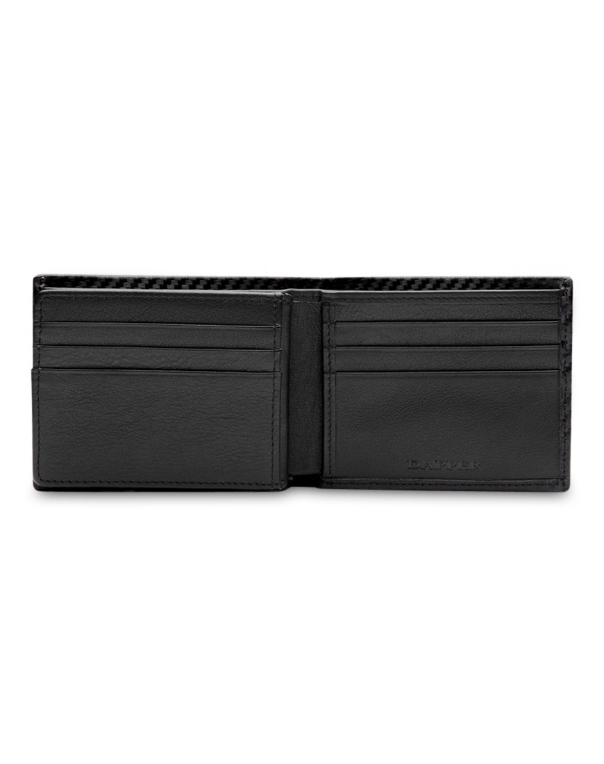 Carbon Fiber Billfold Tri-fold Wallet made from Carbon Fiber embossed on genuine leather match with soft black leather inside with extra compartment.