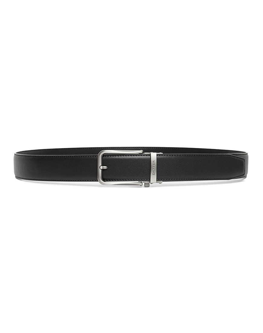 Leather Ratchet belt with Automatic click buckle made of Black Smooth genuine leather strap with edge stitched for strong and durability. Buckle made of Zinc Alloy in Modern Brushed Gun metal finishing. Buckle look like Pin buckle but easy to tighten or loose Push side button & pull to release.