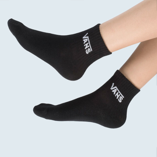 Half Crew Sock is a high-neck sock made of 65% Cotton, 25% Pes, 6% Nylon, 2% Elastodiene, 2% Elastan. The wool is just thick enough and the stylized logo pattern creates a highlight at the ankle for high fashion.