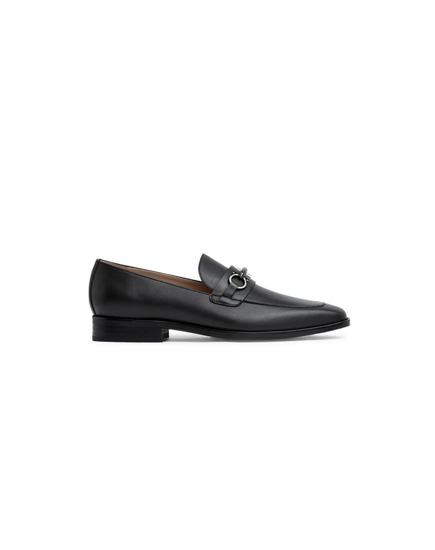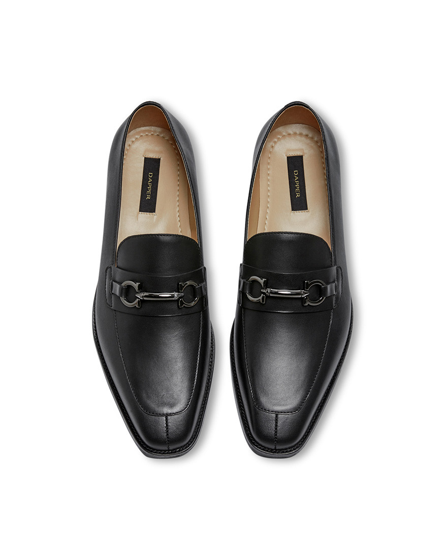 Dress Horsebit buckle loafers made with black full grain leather. Featuring elastic insets at the ankle Leather sock and lining, soft & non-slippery tech rubber outsole, 1-inch heel height, decorated with shiny black buckle.