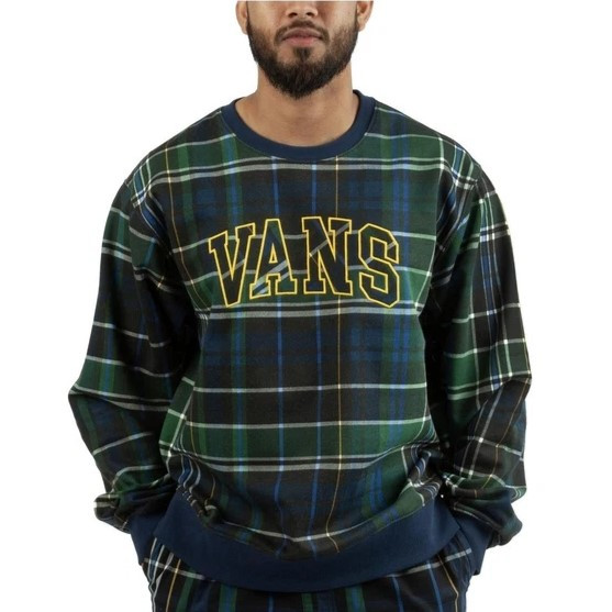CHANNEL AN OLD SCHOOL COLLEGIATE LOOK WITH THE VANS PLAID PULLOVER CREW FLEECE. FEATURING A PLAID LOGO APPLIQUÉ ATOP AN ALLOVER PLAID PRINT, THIS CREWNECK SWEATSHIRT DRAWS INSPIRATION FROM THE PAST WHILE ADDING AN UNMISTAKABLE “OFF THE WALL” AESTHETIC. MODEL WEARING SIZE 32 OR MEDIUM.