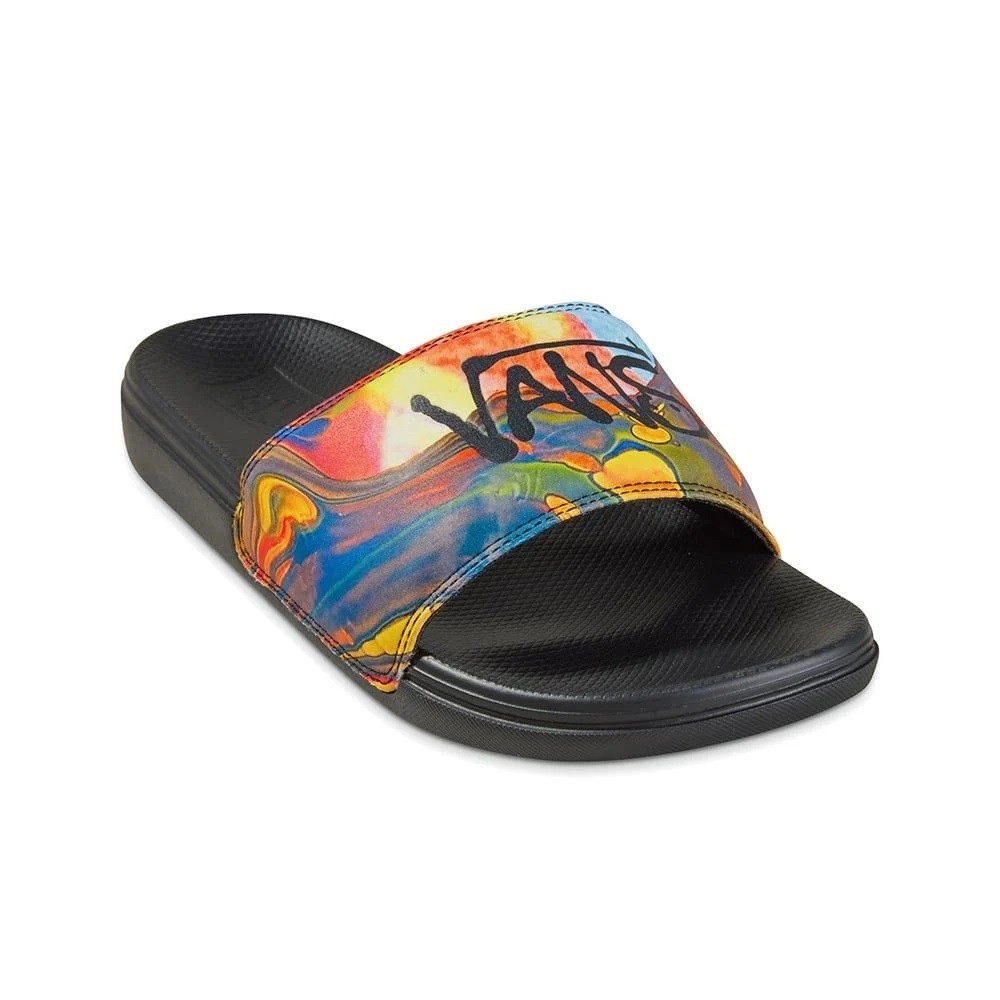 Vans and La Costa launched the unique item VANS LA COSTA SLIDE-ON sandals with colorful patterns and a unique Vans logo. The item has a lightweight and flexible structure that hugs the foot perfectly and provides a pleasant feeling of comfort. For added comfort, the nubuck strap has a textile lining. Made with a lightweight and flexible UltraCush™ compound, ensuring a comfortable step.