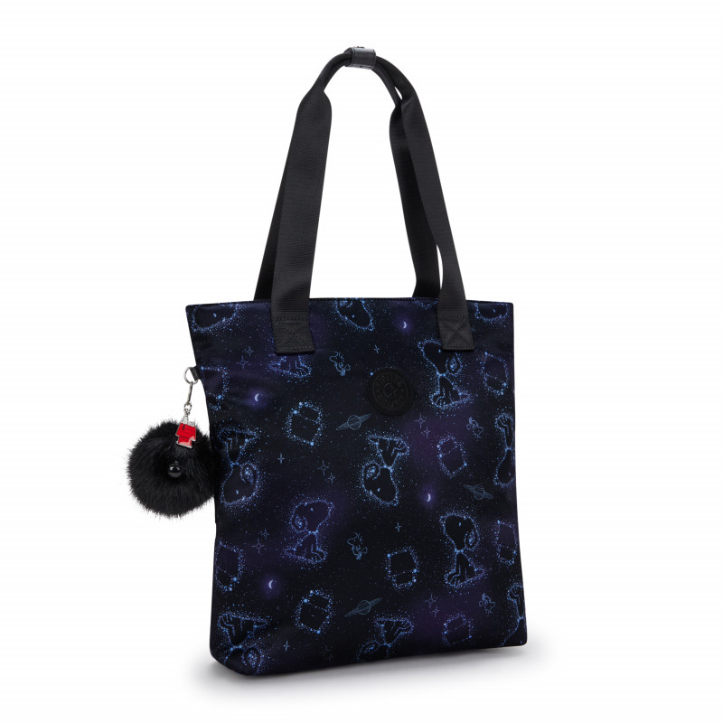 A dose of childhood nostalgia and carefree fun, this one is for the dreamers! We've teamed up with the legendary Peanuts to craft this super-chill, denim-like tote bag featuring Snoopy in a distinctive, hand-drawn style. Details include a silver Kipling logo, a bright red interior lining with Snoopy graphics, and our iconic monkey keychain wearing a red sweater and sunglasses in the style of Snoopy’s "Joe Cool" persona. Use Merita S for the commute or to travel. It'll fit everything you need, plus an ipad or laptop.