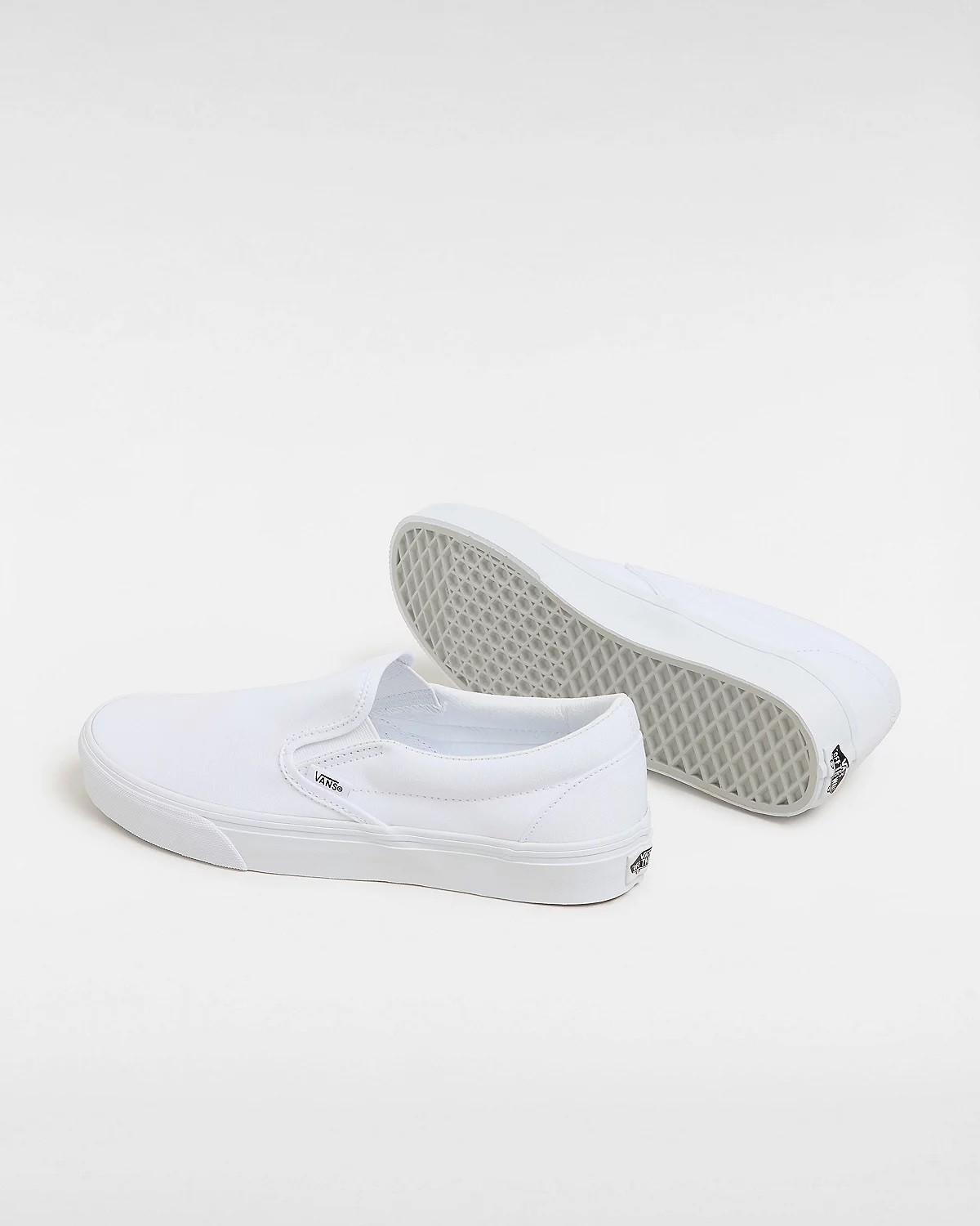 First introduced in 1977, the Vans #98-now known as the Classic Slip-On-instantly became an icon in Southern California. Fast forward to today, and the Classic Slip-On is known worldwide for its comfortable silhouette, easy wearability, and beloved design. Made with sturdy low profile canvas uppers, the Classic Slip-On is an everyday essential with true “Off The Wall” style. This iconic slip-on shoe also includes supportive padded collars, elastic side accents, and signature rubber waffle outsoles.