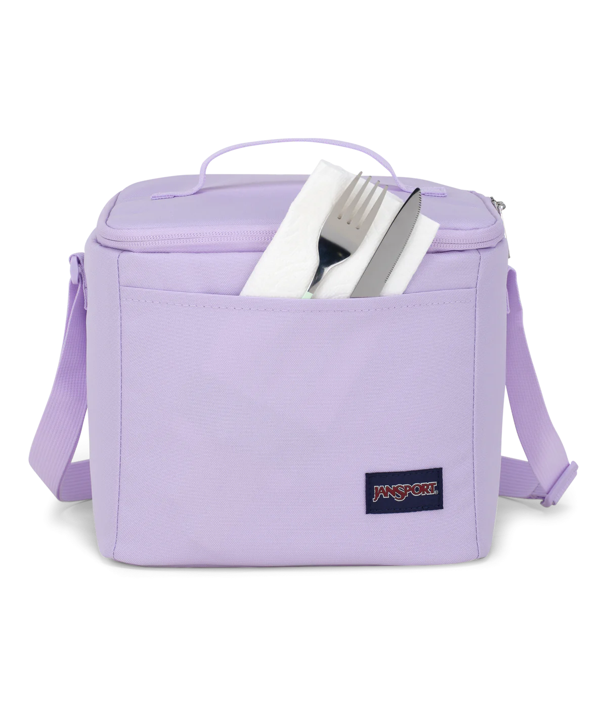 Super Snack eats brown bags for lunch. Keep foodie favorites in an insulated, BPA-free main compartment. Store items in the easy-access front drop pocket. An adjustable shoulder strap or haul handle let you eat and run in style.Features