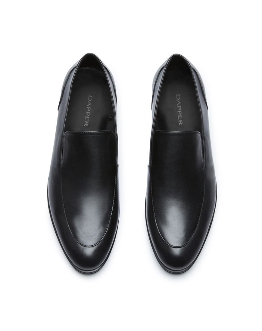 Men classic Plain-Toe Loafer made with Black smooth Tech leather Elasticized insets at the ankle Microfiber sock & lining match with Dapper rubber dot tunit outsole classic 1 inch heel for formal look