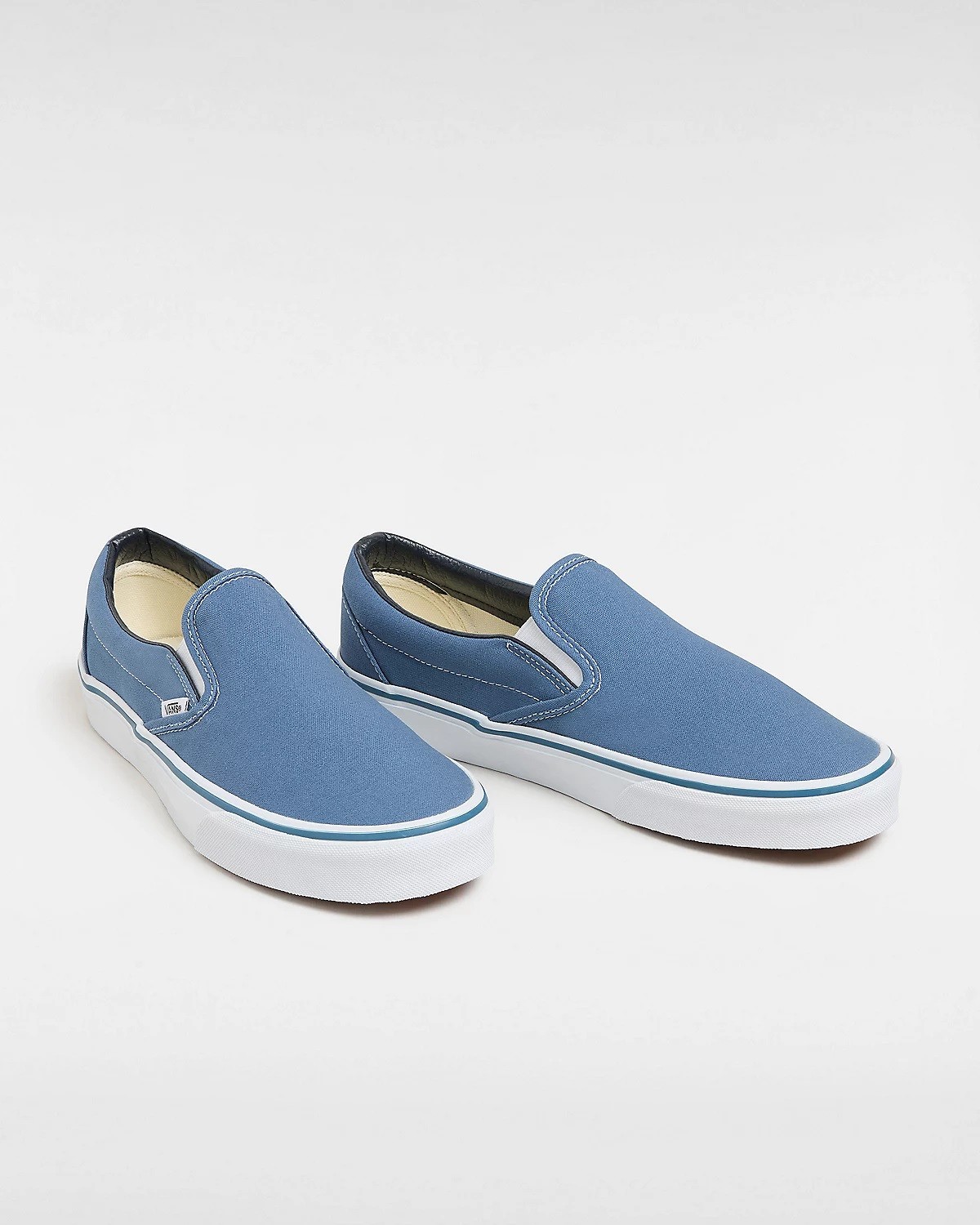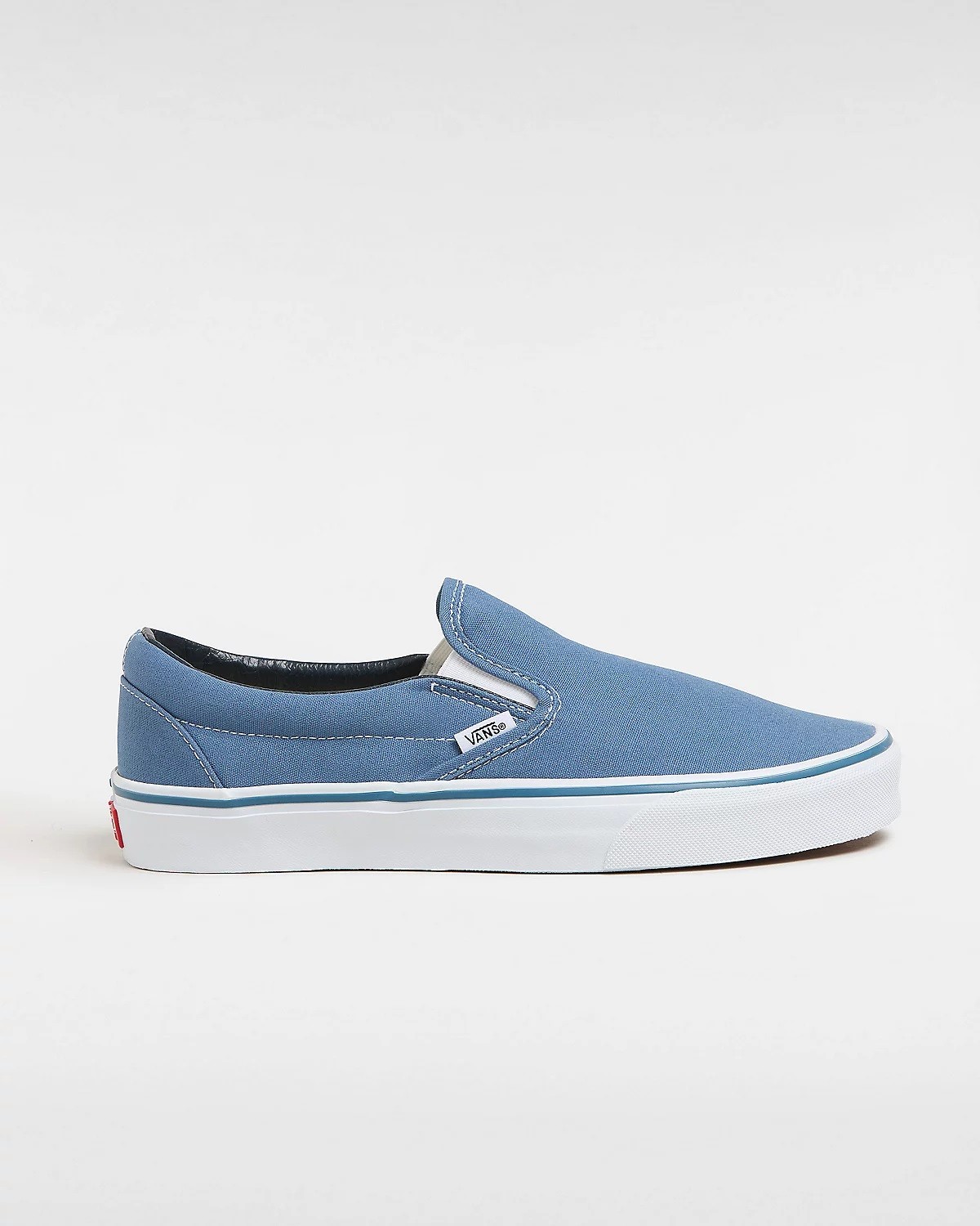 First introduced in 1977, the Vans #98-now known as the Classic Slip-On-instantly became an icon in Southern California. Fast forward to today, and the Classic Slip-On is known worldwide for its comfortable silhouette, easy wearability, and beloved design. Made with sturdy low profile canvas uppers, the Classic Slip-On is an everyday essential with true “Off The Wall” style. This iconic slip-on shoe also includes supportive padded collars, elastic side accents, and signature rubber waffle outsoles.