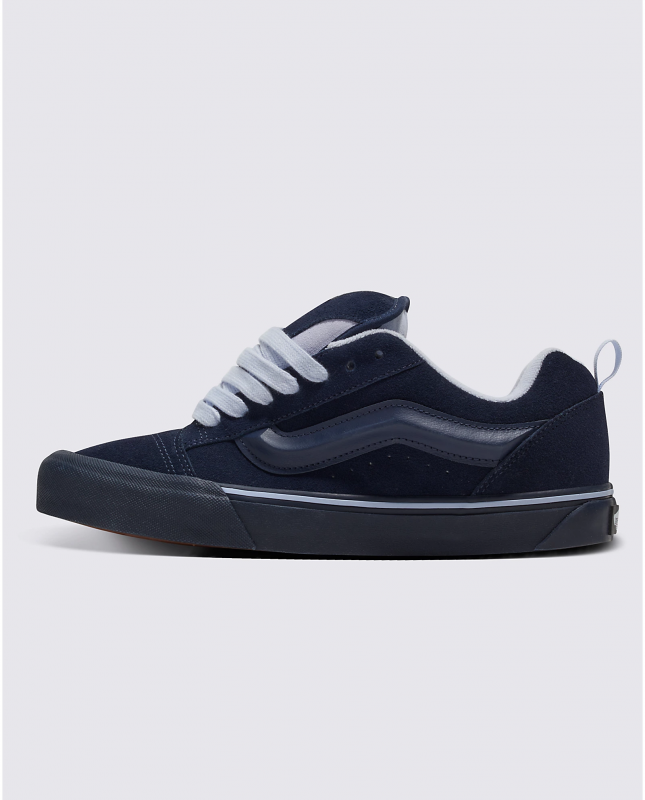 The Knu Skool is a modern interpretation of a classic 90s style, defined by its puffed up tongue and 3D-molded Sidestripe, and tied off with oversized, chunky laces. With its in-your-face profile, monotone aesthetic, and dramatic style details, the Knu Skool plays off of the original Old Skool while blending an icon of the past with today’s trends.