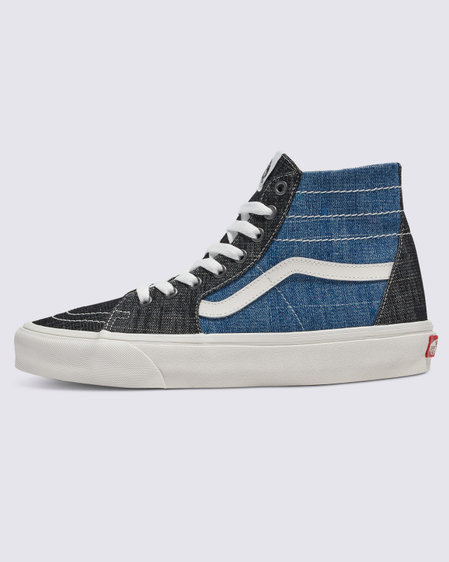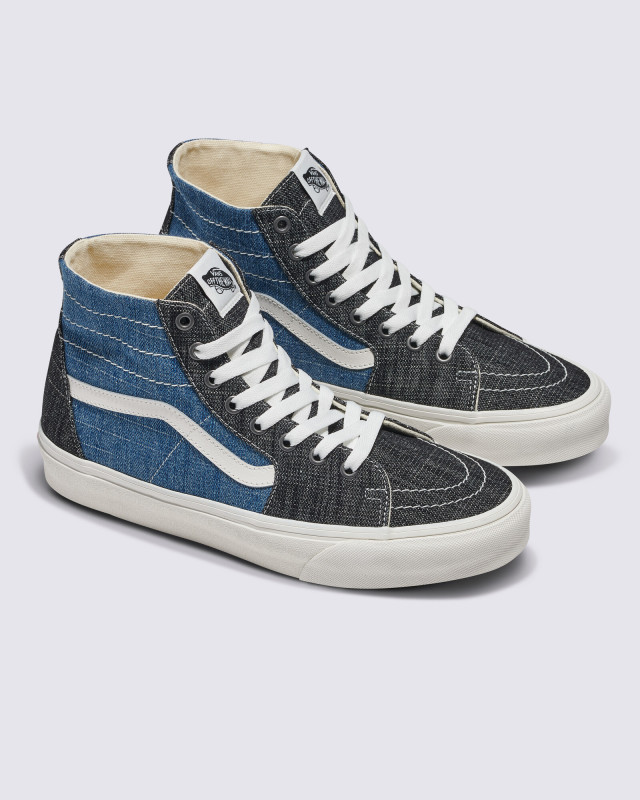 Our legendary high-top shoe gets slimmed down with a deconstructed upper in the Sk8-Hi Tapered. With a more slender fit than the original Sk8-Hi, this laid-back take on an icon offers a streamlined look with plenty of style thanks to the two-tone denim uppers.