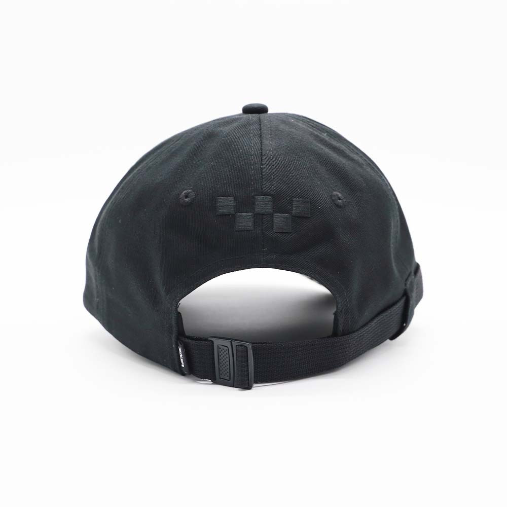 The CHECKER BINDING CAP is made entirely of cotton for good absorbency. The 6-panels structure with checkerboard embroidery around the rim enhances the hat's dynamism and Vans character.